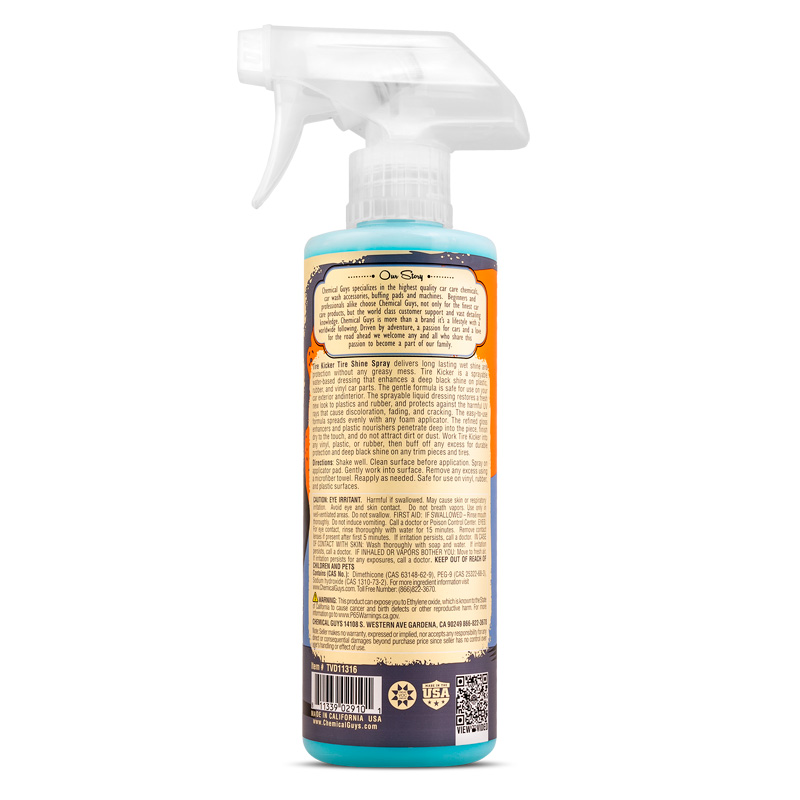 Abrillantador de neumáticos extra brillante Chemical Guys Tire Kicker (473 ml) El tiempo de entrega del articulo puede ser de 10 dias dependiendo de la disponibilidad del articulo.