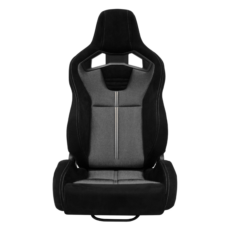 Asiento deportivo 'NK Premium' - Ante negro + Tejido de malla gris - Respaldo de fibra de vidrio reclinable en ambos lados - Incluye toboganes El tiempo de entrega del articulo puede ser de 10 dias dependiendo de la disponibilidad del articulo.