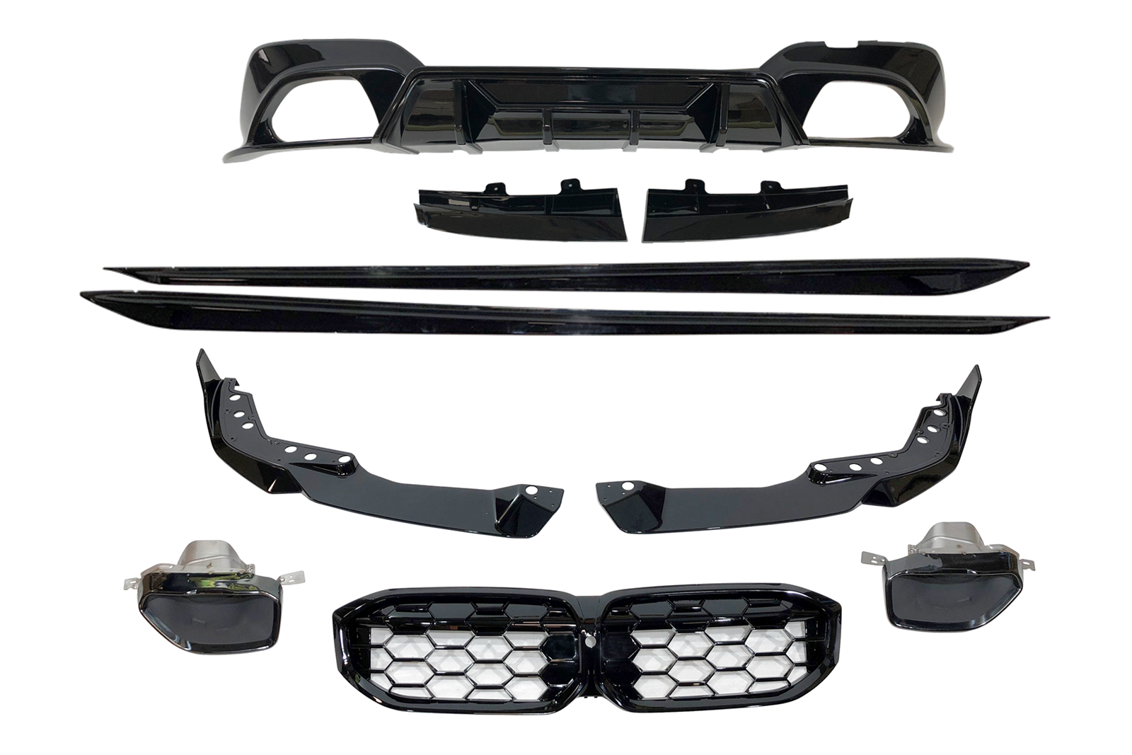 Conjunto paragolpes delantero, paragolpes trasero y taloneras para BMW G21 LCI Look M Performance.