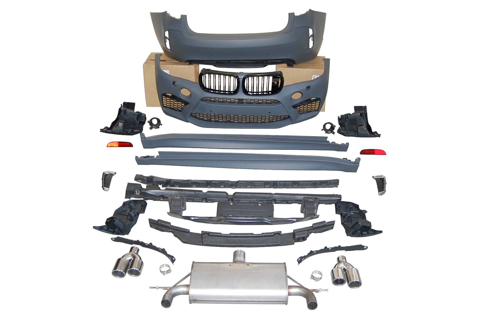 Conjunto de paragolpes delanteros, paragolpes trasero, escape y taloneras para el BMW X6 F16 LOOK X6M.