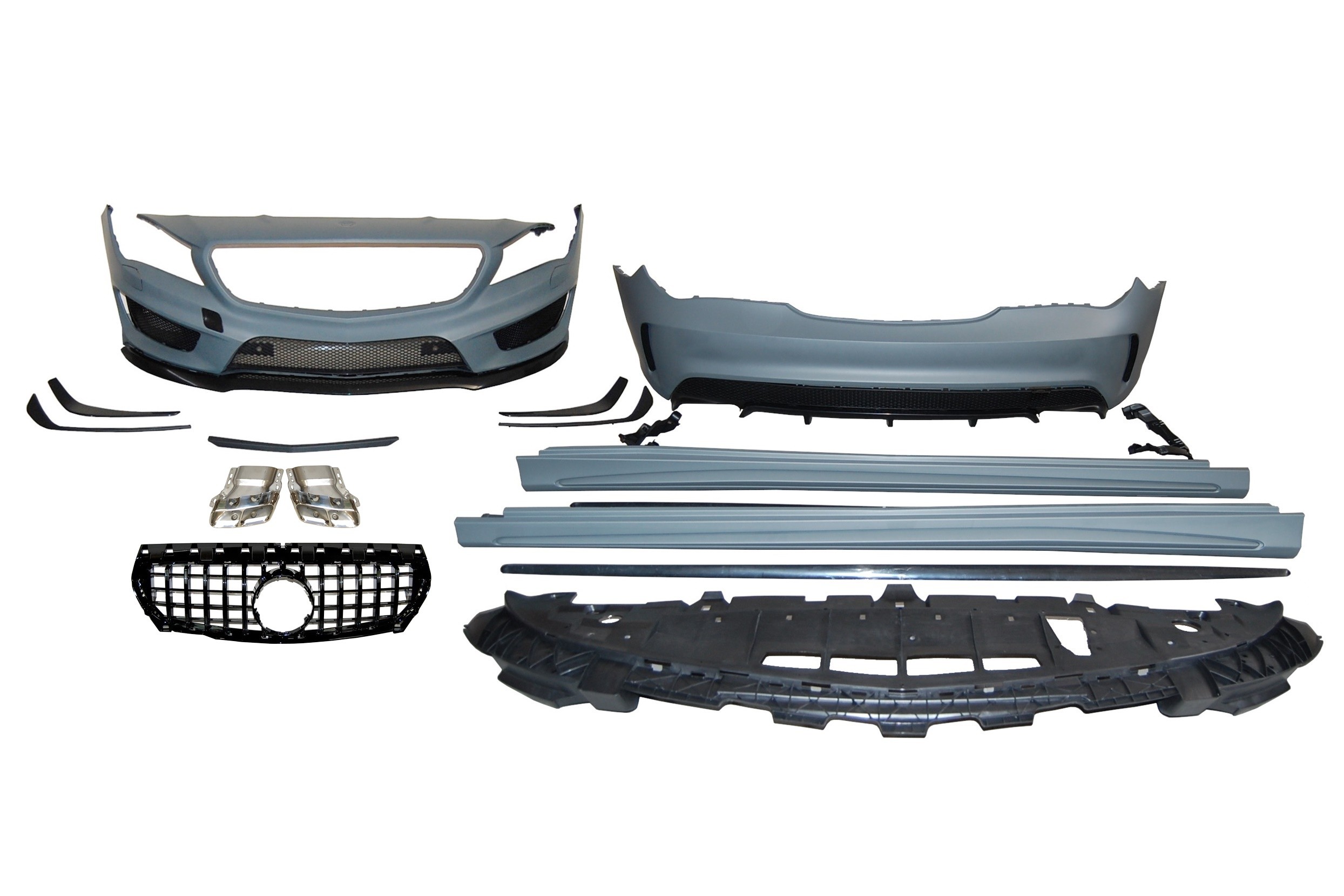 Conjunto de paragolpes delantero, paragolpes trasero y taloneras para el Mercedes W117 13-16 4P / SW.