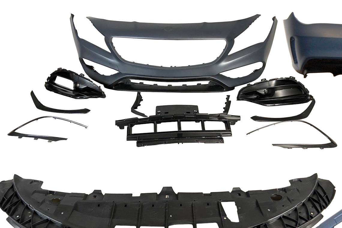 Conjunto de paragolpes delantero, paragolpes trasero y taloneras para el Mercedes W117 2016-2018 LCI 4P / SW.