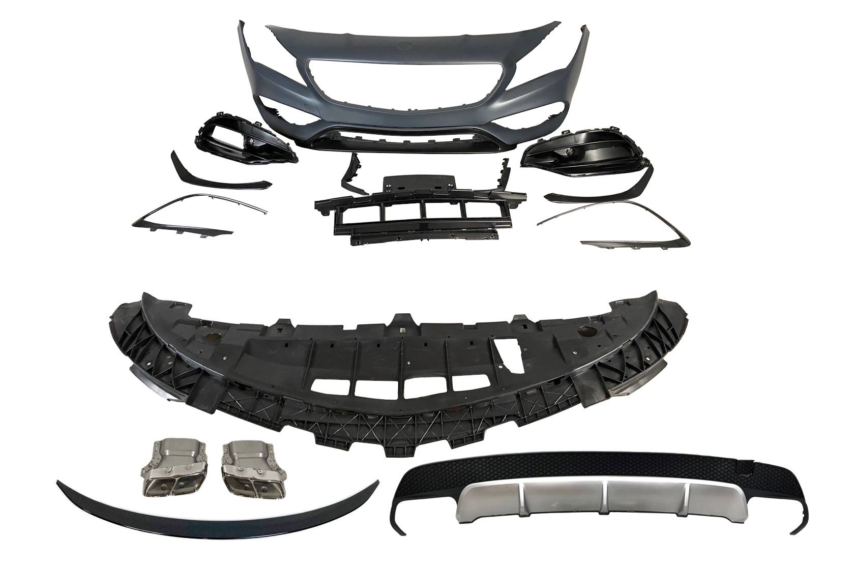 Conjunto de paragolpes delantero, difusor trasero y alerón para el Mercedes W117 2016-2018 LCI 4P.