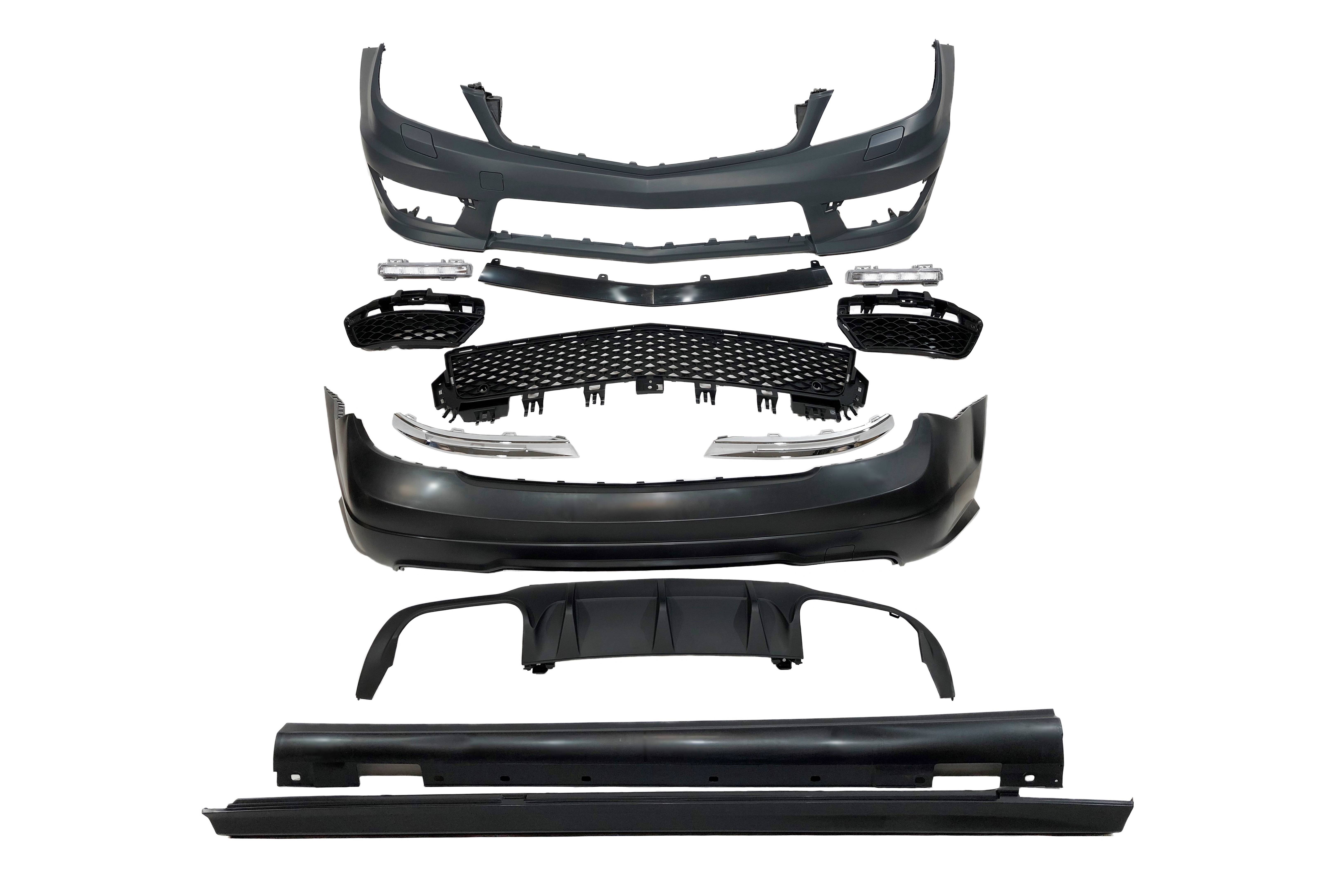 Conjunto de paragolpes delanteros, paragolpes trasero y taloneras para MERCEDES W204 4 PUERTAS 2007-2013.