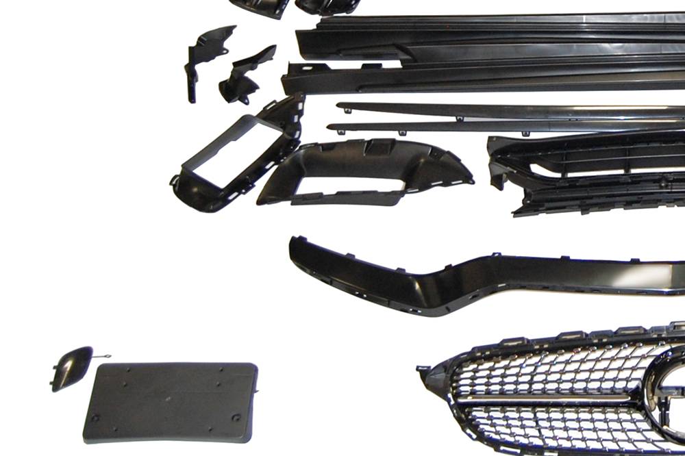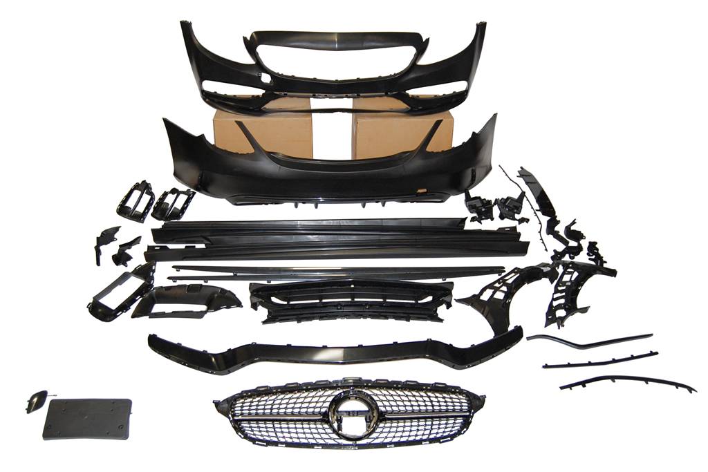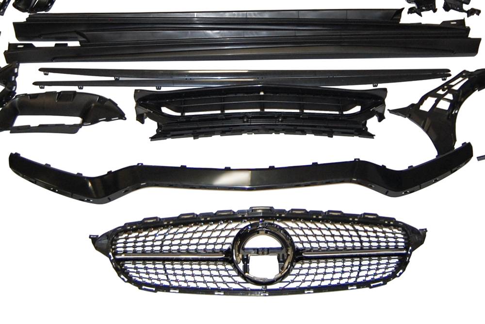 Conjunto de paragolpes delantero, trasero y taloneras para Mercedes W205 4P 2014-2021, Look C63 2019.