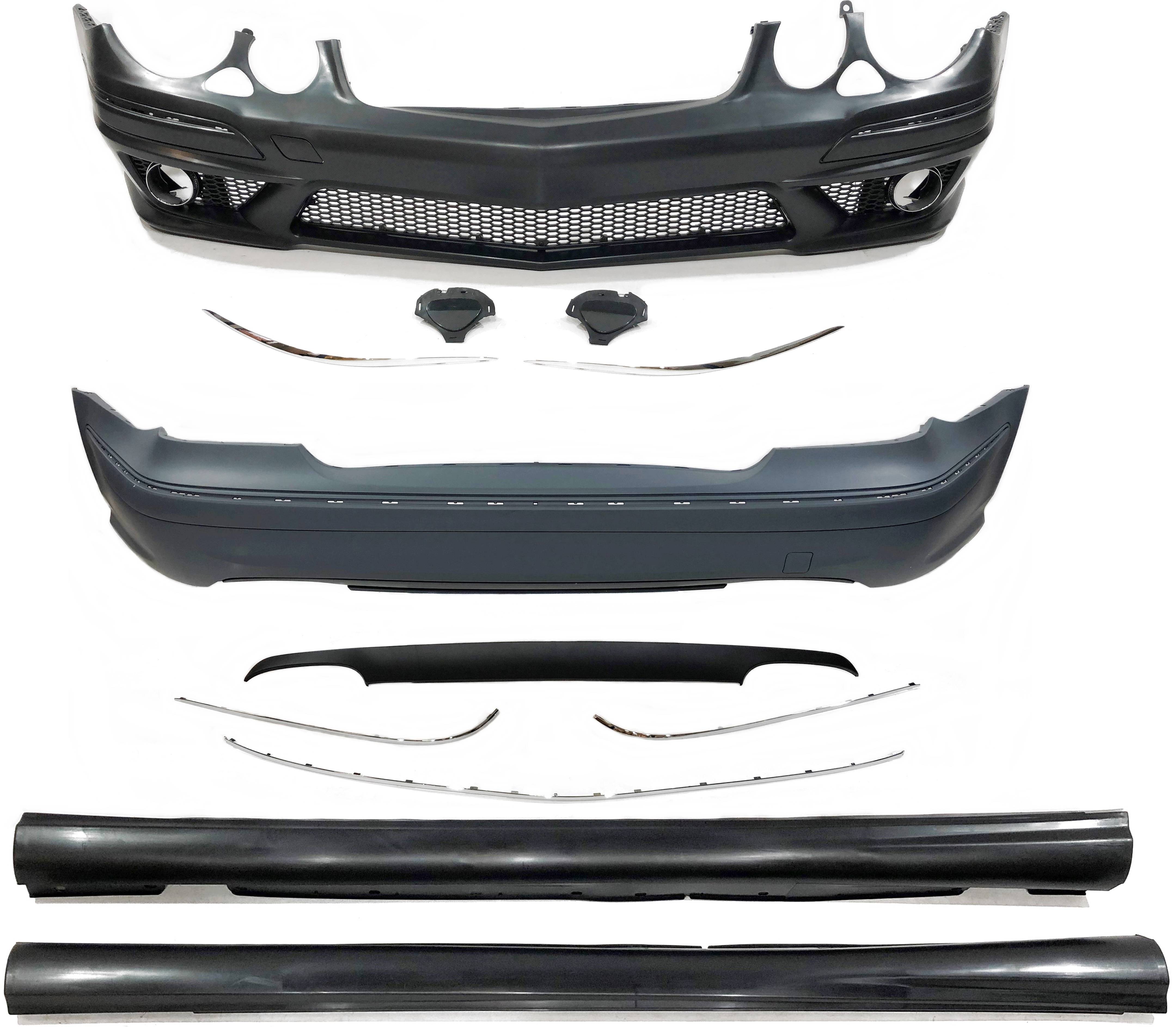 Conjunto de paragolpes delanteros, paragolpes trasero, taloneras para el Mercedes W211 de 2007 a 2009.