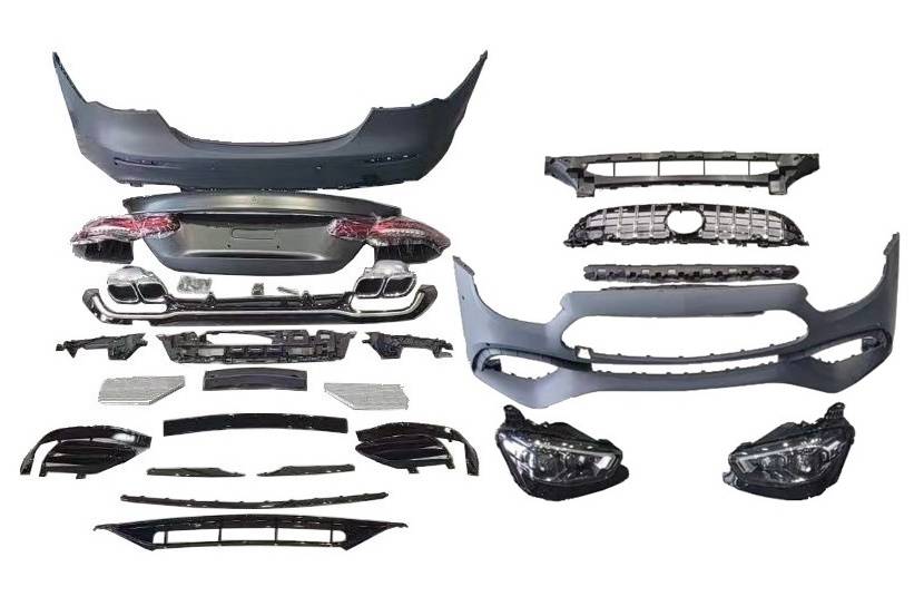 Conjunto de paragolpes delanteros, paragolpes trasero, taloneras, pilotos traseros, faros delanteros y portón trasero para el Mercedes W213 2016-2019, look E63S Actualizado a versión 2020.