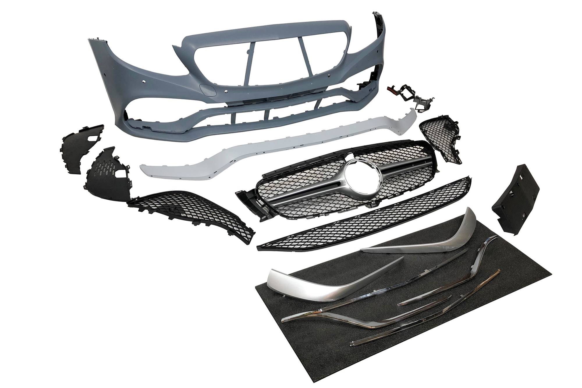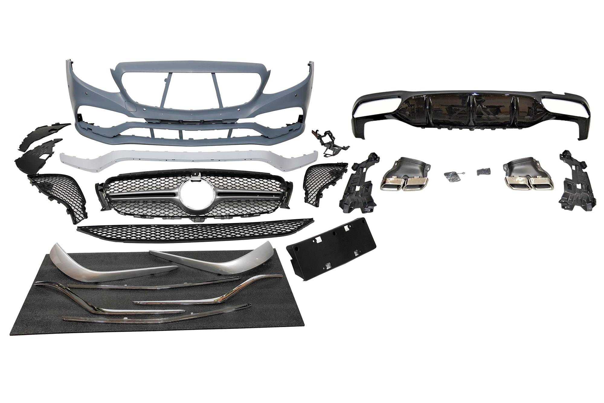 Paragolpes delantero y difusor trasero para Mercedes W213 4 puertas / Estate 2016-2019.