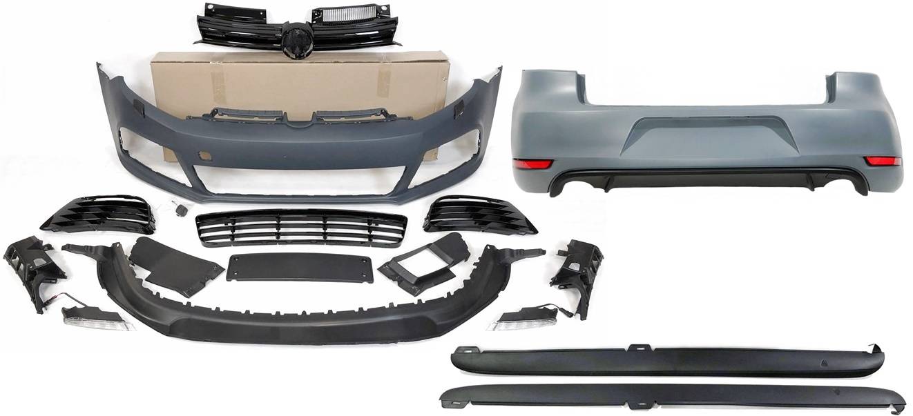 Conjunto de paragolpes delanteros, paragolpes trasero y taloneras para el Volkswagen Golf VI.