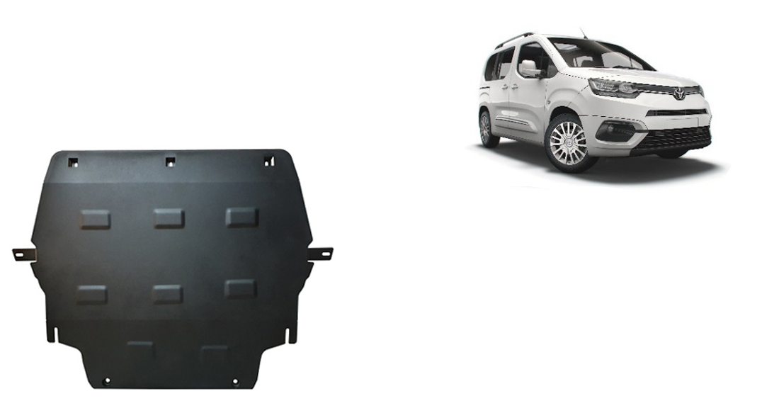 Cubre carter de Acero para Toyota Proace Verso Año: 2020 - 2025 Motor: Caja cambio: Grosor: 2mm Agujero para aceite: Sin hueco para el tapon de aceite. Protege: motor, caja de cambios, radiador Descripcion: Protecciones de acero o aluminio para el motor y la caja de cambios.