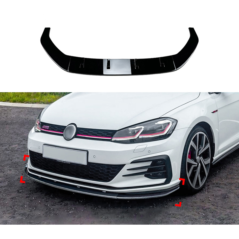 Faldón de alerón delantero para Volkswagen Golf VII (7.5) GTi/GTD/R/R-Line 2017-2019 (ABS negro brillante) El tiempo de entrega del articulo puede ser de 10 dias dependiendo de la disponibilidad del articulo.