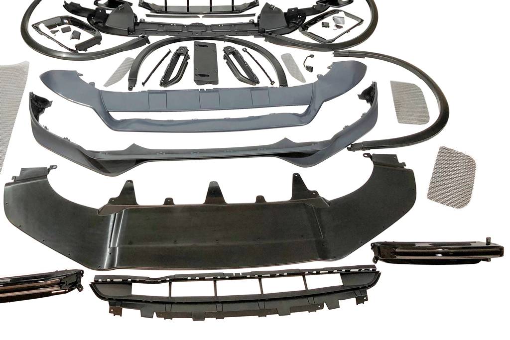 - El producto incluye paragolpes delantero, spoiler delantero, pases de rueda, luces día, y otras piezas pequeñas.