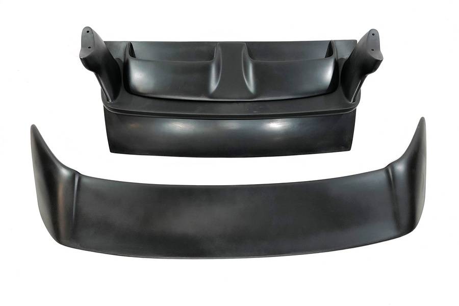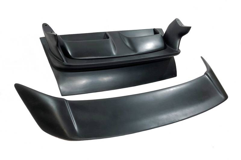 - El portón trasero está fabricado en fibra de vidrio y el alerón.