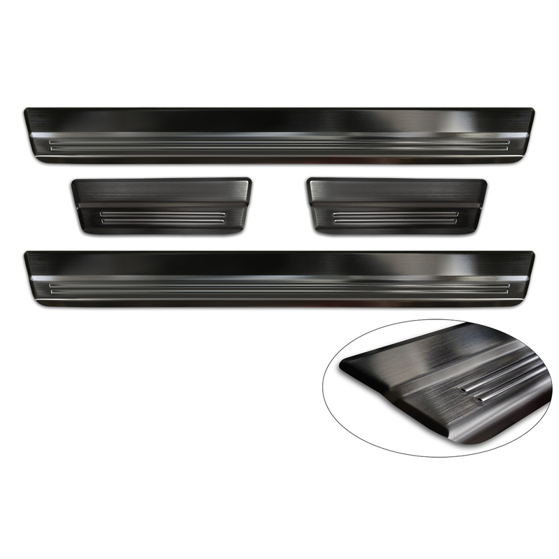 Protectores de umbral de puerta en acero inoxidable negro para Suzuki Swift VI 2024- - 'Lines' - 4 piezas El tiempo de entrega del articulo puede ser de 10 dias dependiendo de la disponibilidad del articulo.