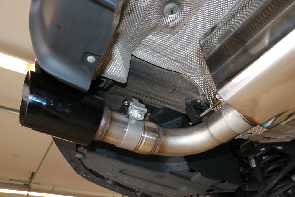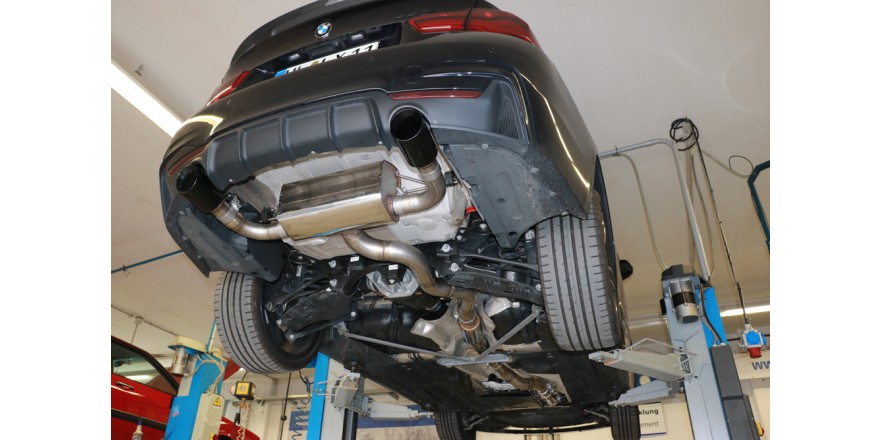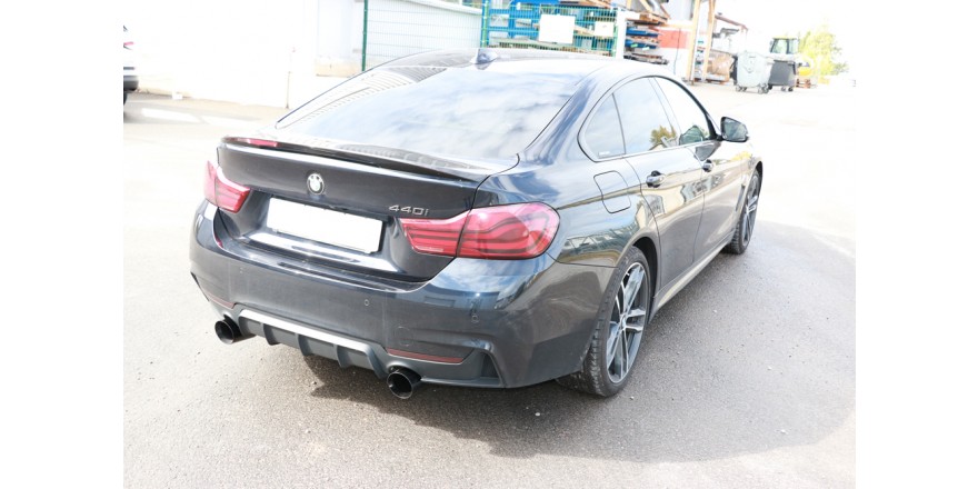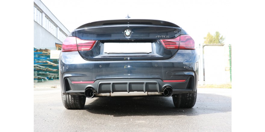 BMW F36 - 440i xDrive Grand Coupe - Paquete M - Escape trasero FOX - 1x100 tipo 25 derecho / izquierdo negro - con válvula de es