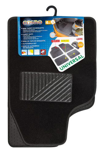 SET 4 ALFOMBRAS UNIVERSALES MOQUETA NEGRO "COSMO"