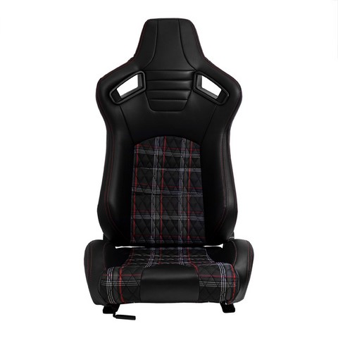 Asiento deportivo 'GT' - Cuero sintético negro + tela con patrón de cuadros rojos + costuras rojas - Respaldo reclinable en ambos lados - incl. diapositivas El tiempo de entrega del articulo puede ser de 9 dias dependiendo de la disponibilidad.
