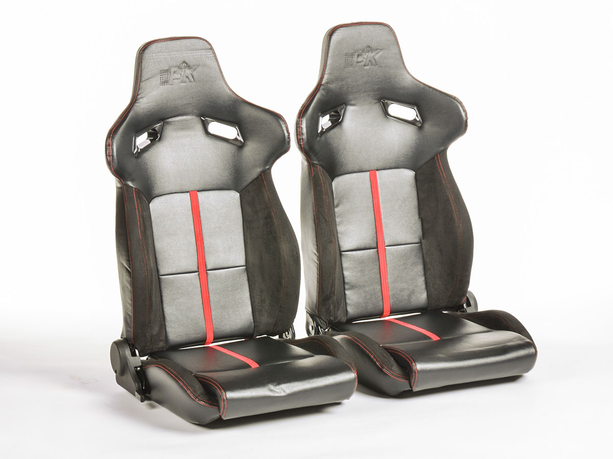 Asientos deportivos Berlin de cuero artificial negro Fk Automotive Asientos deportivos FK AUTOMOTIVE Color: negro, costura roja cubierta: cuero artificial Asientos de medio cubo, conjunto (asiento derecho + izquierdo) sin rieles sin aprobación respaldo respaldado ajustable manualmente con mecanismo de plegado look racing El tiempo de entrega del producto puede ser de 7-10 dias según disponibilidad.