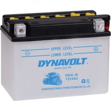 BATERIA DYNAVOLT CLASSIC 12V Referencia: DB4L-B - Tipo equivalente YB4L-B - Capacidad (Ah-10h) 4 - Dimensiones: L(mm) 120 - An (mm) 70 - Al(mm) 92 - Polaridad -____+ - Terminal Cuadrado