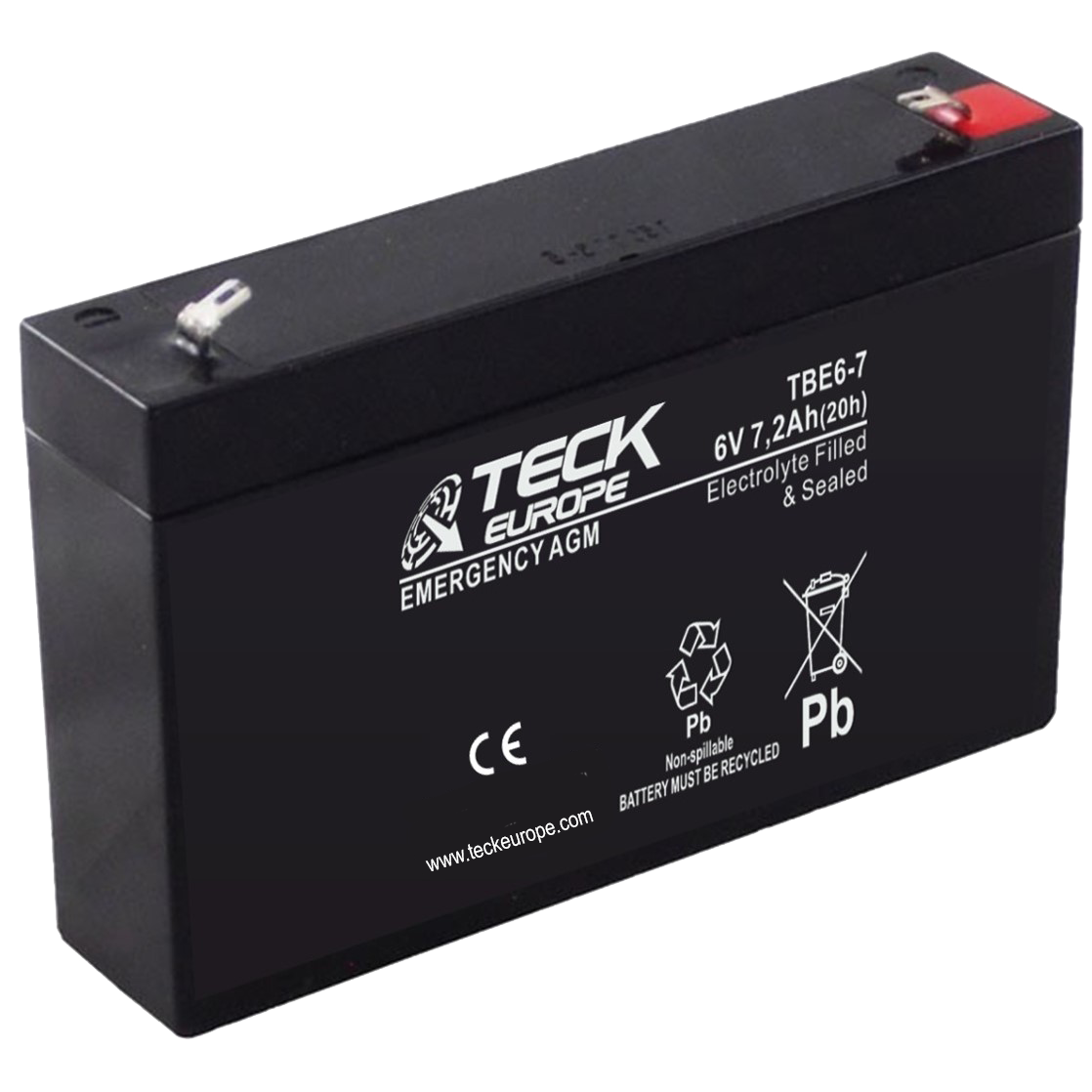 BATERIA TECK EMERGENCY AGM 6V Referencia: TBE6-7 - Voltaje 6 - Capacidad (Ah-20h) 7,2 - Dimensiones: L(mm) 150 - An (mm) 34 - Al(mm) 94 - Polaridad - - Terminal Faston F2
