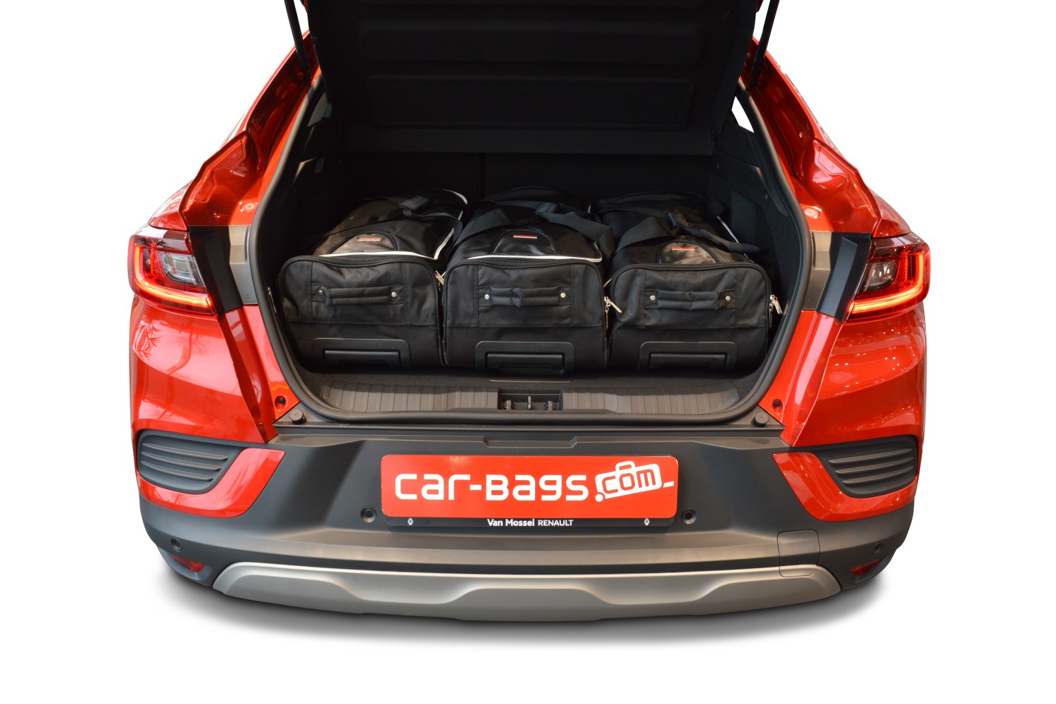Set de bolsas de viaje para Renault Arkana 2019-actualidad con piso del maletero ajustable en la posición más alta. Aprovecha al máximo el espacio de tu vehículo con este set de maletas CarBags de alta calidad. Estas maletas son flexibles, lo que facilita su almacenamiento en el hogar.
