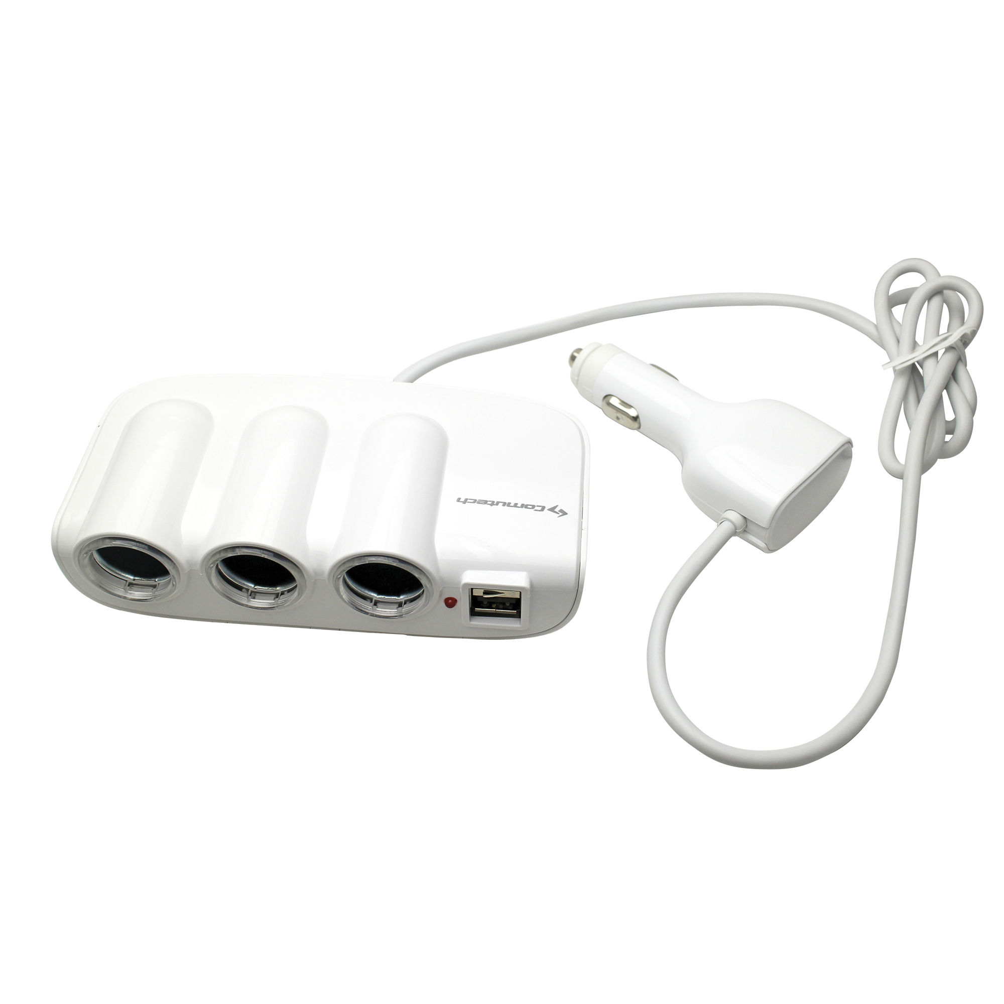 Cargador 12/24V con una toma triple de encendedor y dos puertos USB. Indicador LED. Cable: 95 cm. Toma de encendedor: 12/24V 8A Fusible 8A. Puertos USB : 5V 2A en total.