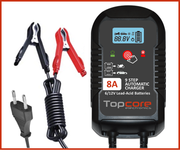 CARGADOR TOPCORE CARGADORES Referencia: TOPCORE 8A - Corriente de carga 6v - 12v 6v - 4A - 12v 4/8A - - - Tecnología Plomo-Acido - Capacidad 40-240Ah - -