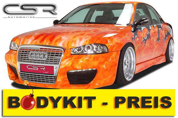 KIT CARROCERIA Audi A4 B5 Kit carroceria (P. Delantero, P. Trasero, Taloneras, *Otros (*Consultar) ) Referencias incluidas FSK111;HSK003;SS002;GL030;MOT111;ZB009;ZB012 CSR AUTOMOTIVE EL TIEMPO DE ENTREGA SI EL ARTICULO NO ESTA DISPONIBLE ES DE 5 SEMANAS