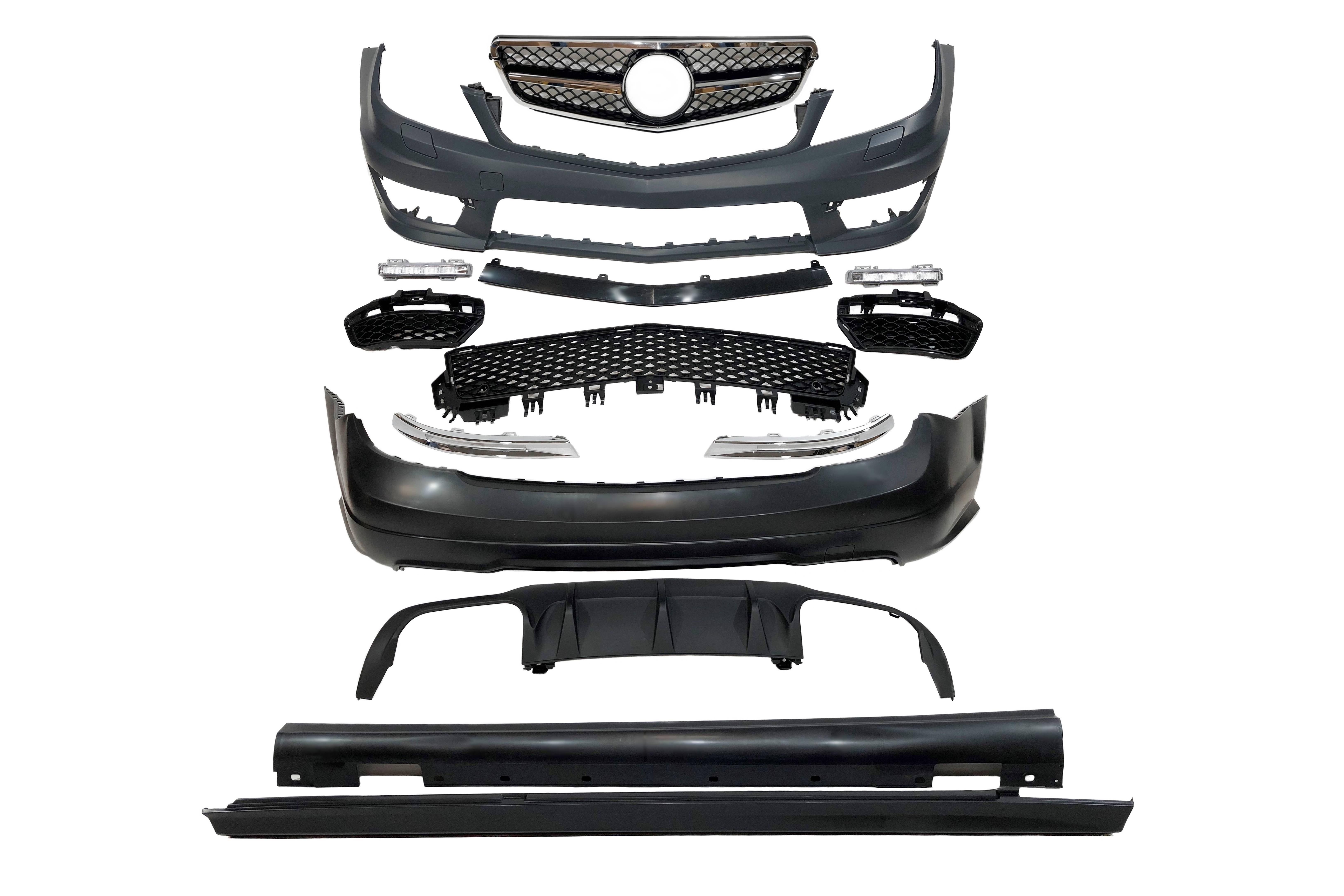 Conjunto de paragolpes delanteros, paragolpes trasero, parrilla y taloneras para MERCEDES W204 4 PUERTAS 2007-2013.