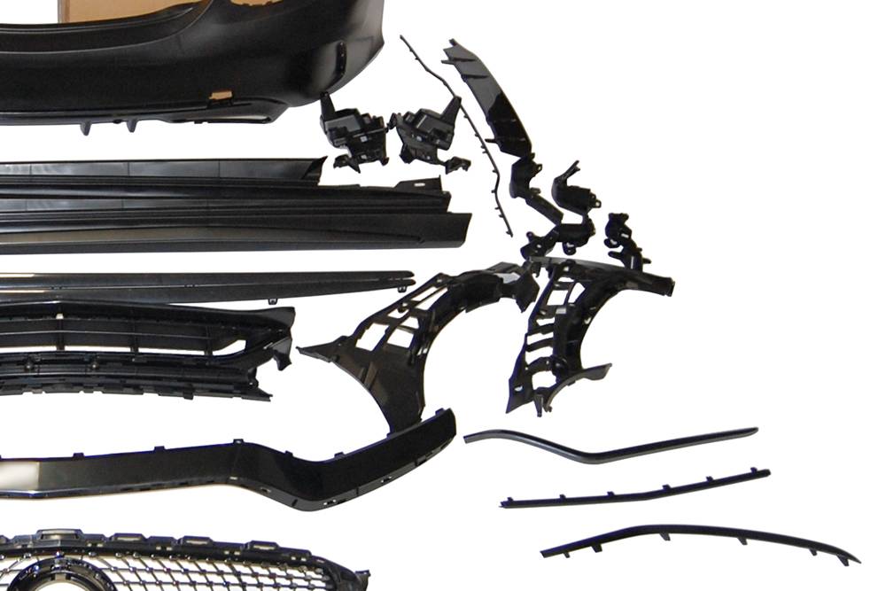 Conjunto de paragolpes delantero, trasero y taloneras para Mercedes W205 4P 2014-2021, Look C63 2019.