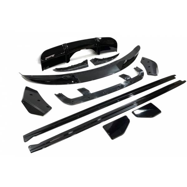 El spoiler delantero, difusor trasero, y difusor taloneras se suministra con una terminación negro brillante, listo para montar.