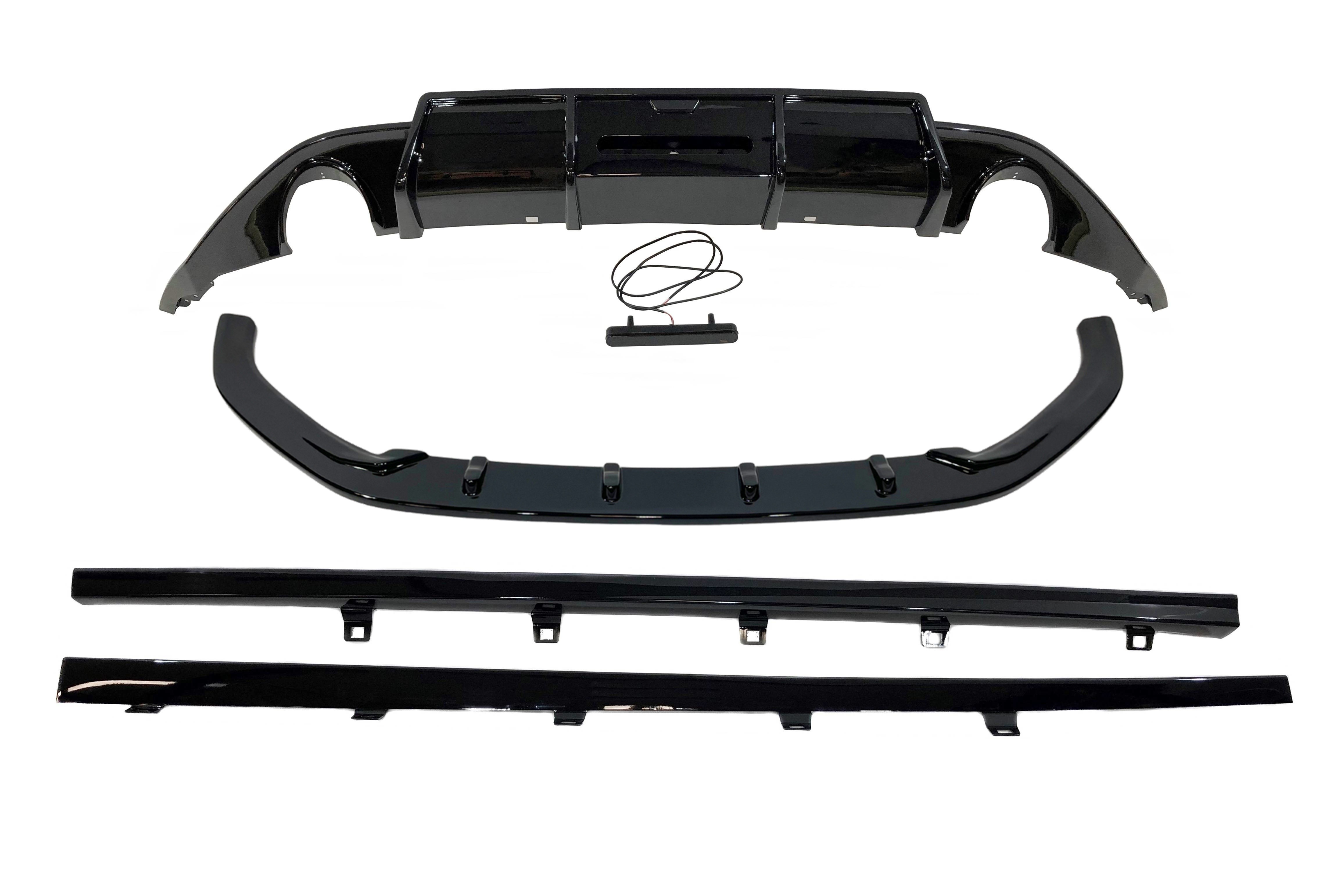 - Compuesto de spoiler delantero, difusor trasero y difusor taloneras.