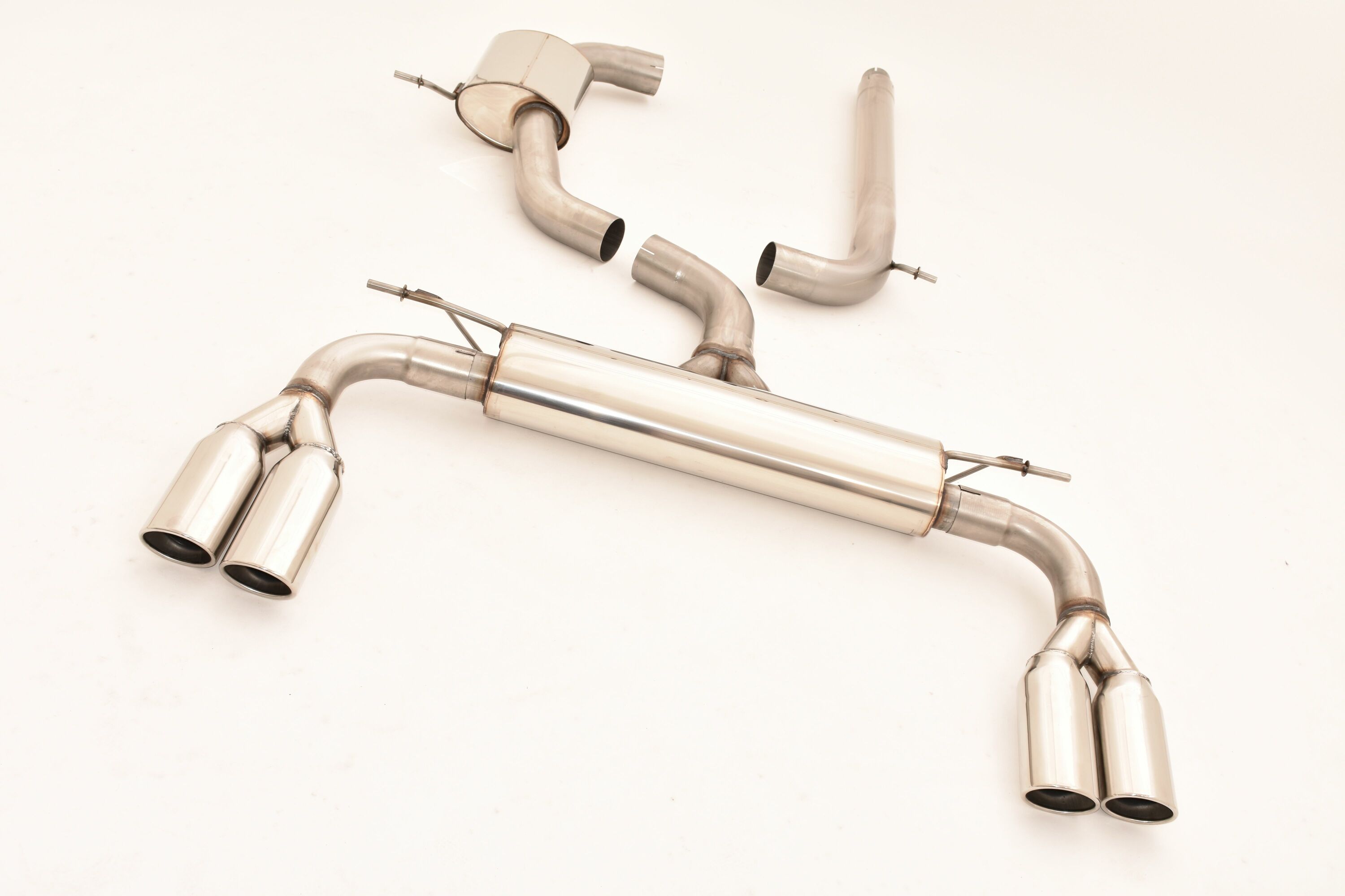 Catback-system de 76 mm con salida de escape izquierdo y derecho Friedrich Modelo y año: Audi A3 8V Cabrio 2WD Desde Año: 01/2014 Motorizacion: 1.8l TFSI 132kW Observaciones: Disponible para paquete S-Line, Indicarlo en el pedido Notas: Homologacion: CON HOMOLOGACION Fabricacion: Acero Inoxidable Marca: FRIEDRICH EXHAUST El tiempo de entrega puede variar dependiendo de la disponibilidad del articulo en fabrica.