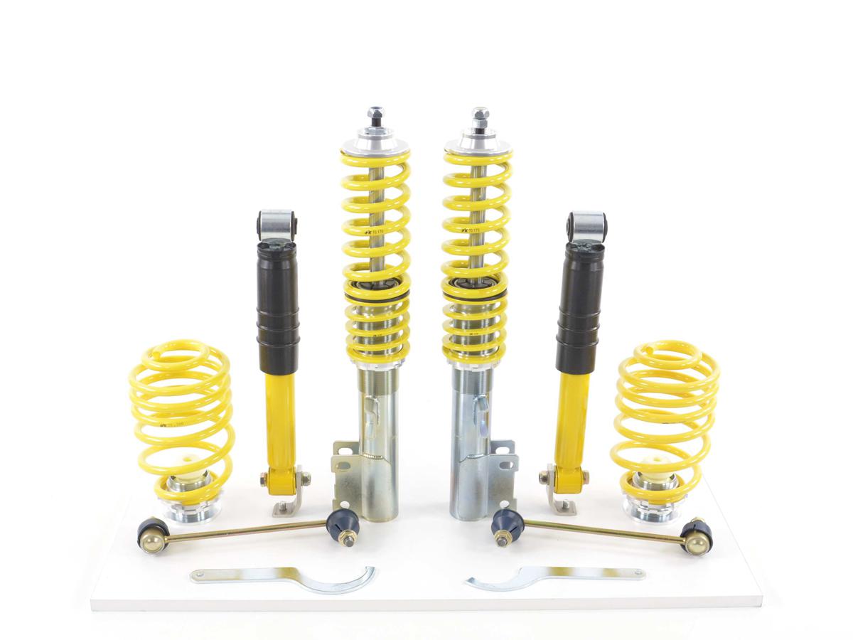 Kit coilover FK, suspensión deportiva regulable en altura para Opel Astra G T98 / NB / T98C / T98V Bj. 1998 a 2004, sin camioneta incluido certificado de piezas según §19.3 Bajada de aprox.30 a 75 mm Material: acero galvanizado deportivo, estrechamente coordinado altura regulable individualmente, incluida llave de gancho incluidas las barras de acoplamiento acortadas FKKSS07 Max. Carga del eje delantero 1040 kg Max. Carga del eje trasero 845 kg el chasis para una conducción más divertida a bajo precio El tiempo de entrega puede ser de 7 dias según la disponibilidad Kit coilover FK suspensión deportiva Opel Astra G T98 / NB / T98C / T98V año 1998-2004 A un precio razonable, obtiene el modelo superior de FK como el comienzo ideal en el mundo del tuning. Los coilovers se pueden ajustar rápida y fácilmente con la ayuda de la llave de gancho suministrada. Dependiendo del vehículo, el rango de ajuste varía entre 25 y 80 mm. Los kits de coilover FK se han utilizado con éxito durante casi 25 años y son conocidos por su configuración de suspensión deportiva, la más alta calidad y una excelente relación precio-rendimiento. Materiales de primera clase, mano de obra perfecta y muy buena protección contra la corrosión le garantizan un placer de conducción prolongado con estos coilovers de alta calidad. A menos que se indique lo contrario, los coilovers están equipados con un certificado de piezas TÜV. El kit de coilover FK es la primera opción para todos los que quieran ajustar su vehículo; - ajuste de altura simple, continuo e individual en el rango de ajuste probado - coordinación deportiva apretada - calidad de primera clase para una larga vida útil - Más diversión al conducir gracias a un excelente comportamiento en las curvas. - Solución completa lista para su instalación - Amortiguador deportivo de calidad FK óptimamente coordinado - componentes de aluminio fabricados por CNC de alta calidad (parcialmente anodizados) - nuevo y en embalaje original - disponible inmediatamente Volumen de suministro: 1x kit de coilover FK con alcance de entrega específico del vehículo y llave de gancho 1x certificado de piezas según §19 / 3 para descargar 1x instrucciones de montaje