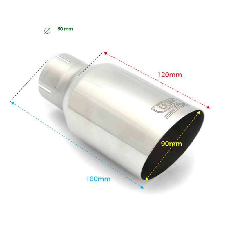 Cola de escape Ulter sport Redondo Ø90mm Inclinado - Longitud 180mm - Instalación ->50mm - Inox El tiempo de entrega del producto puede ser de 10 dias según disponibilidad.