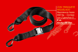 CORREAS CON 2 GANCHOS "S" HASTA 5 m-ANCHO 25MM