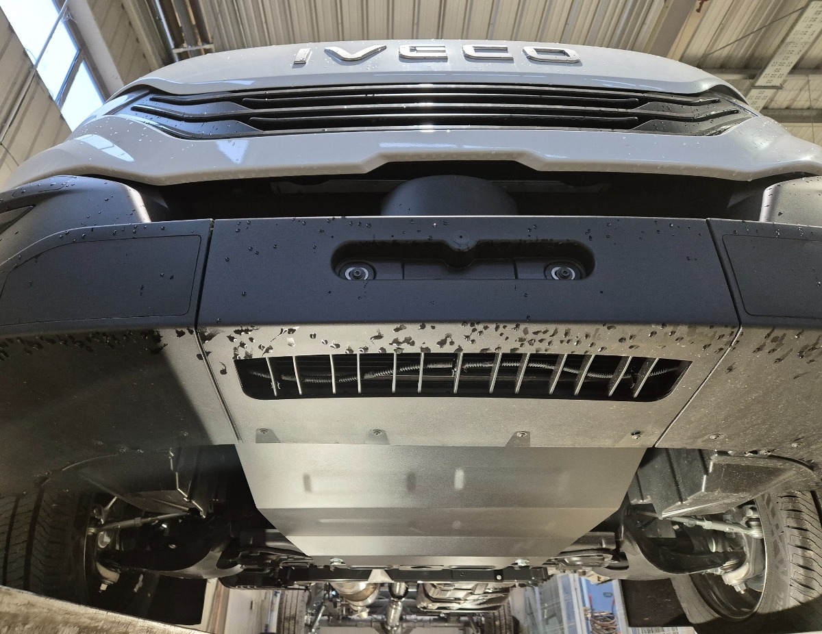 Cubre carter de Acero para Iveco Daily 7 Año: 2024 - 2025 Motor: Todas las motorizaciones Caja cambio: Grosor: 2mm Agujero para aceite: Sin hueco para el tapon de aceite. Protege: motor, radiador Descripcion: Protecciones de acero o aluminio para el motor y la caja de cambios.
