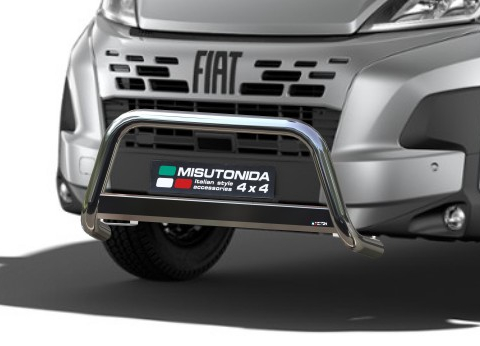 Defensa Delantera Acero Inox Fiat Ducato 2024> - diametro 63mm - Homologacion CE MISUTONIDA Es un kit listo para ser instalado. No se requieren modificaciones. Compatible con el sistema ACC, sensores de estacionamiento y gancho de remolque.