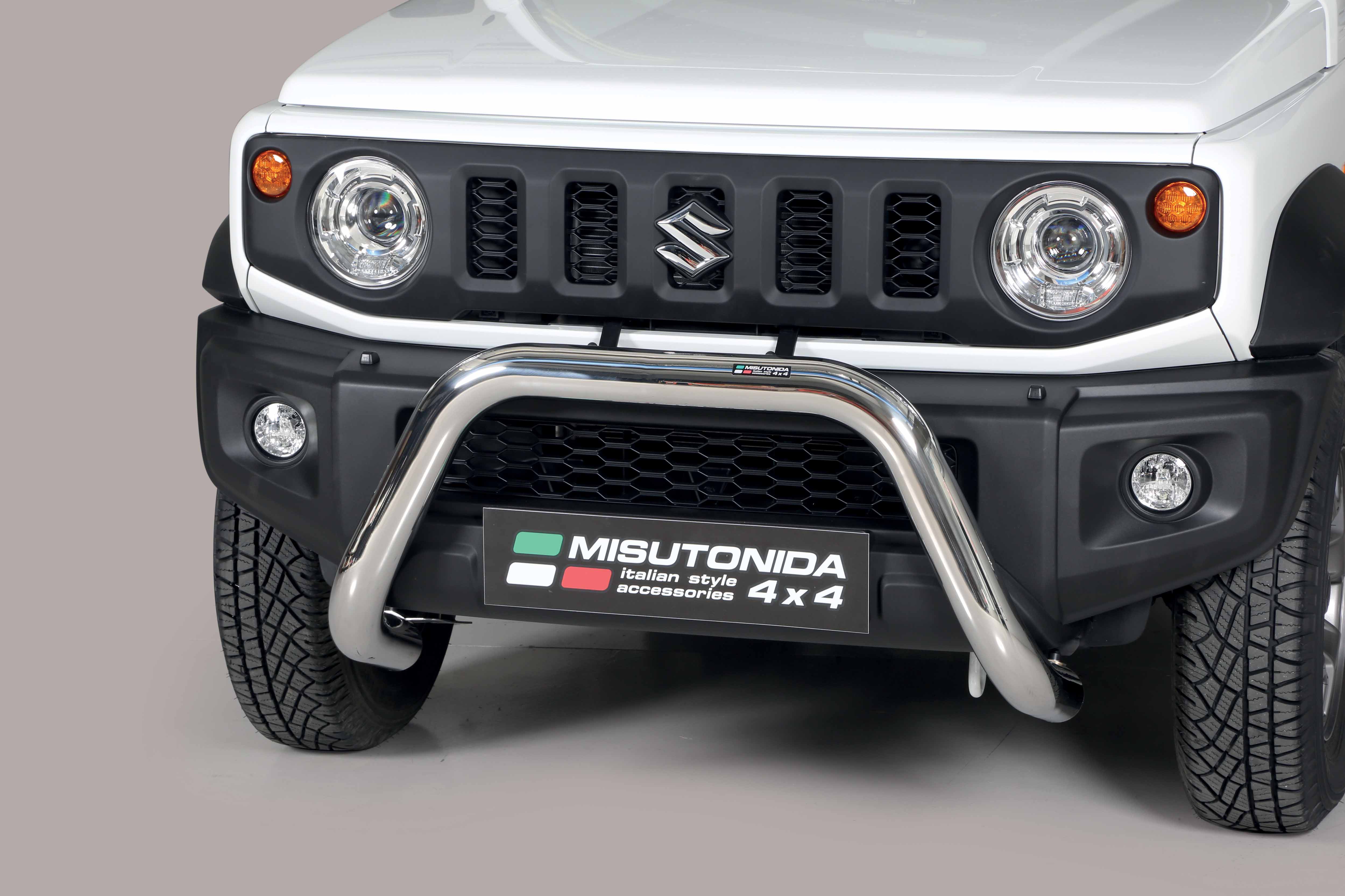 Defensa delantera inox SUZUKI Jimny 2018> ø 76 Homologada - EC BAR El tiempo de entrega del material puede ser de 7-9 dias Misutonida 4x4 es una empresa italiana que desde hace más de 25 años produce y vende accesorios para Off-Road y S.U.V.