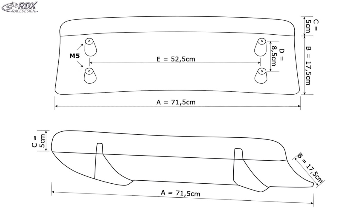 The width of the U-Diff XL rear diffusor is 71.5 cm. All other relevant dimensions are shown on the dimensional drawing.