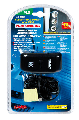 ENCHUFE MECHERO PL3 3 TOMAS 12V ALARGADOR 2 M