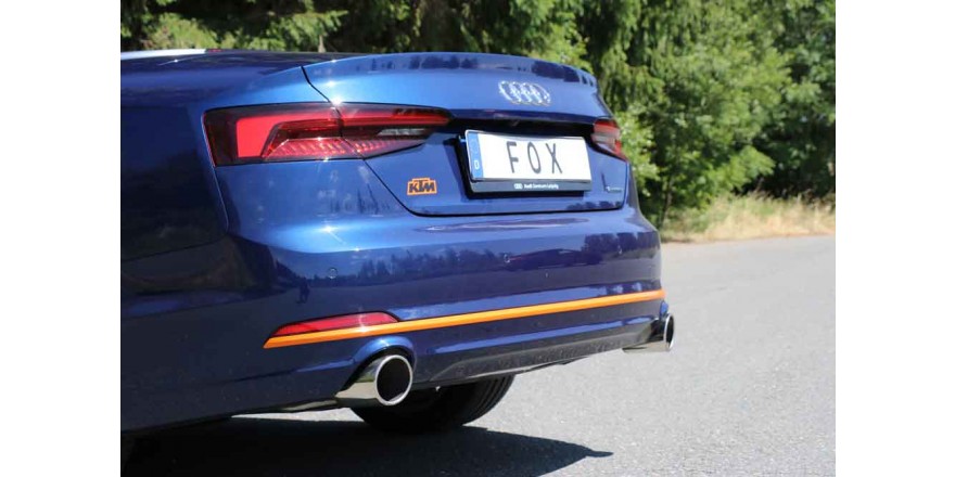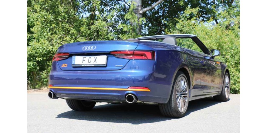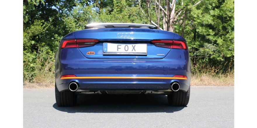Silenciador trasero derecha / izquierda para flujo simple de 1 tubo - 1x100 tipo 16 derecha / izquierda Vehiculo:Audi A5 quattro B9 descapotable Año: Motor:2,0l TFSI 185kW Observaciones: Con homologacion CE Diametro:63,5mm FOX EXHAUST El tiempo de entrega del material puede ser de 7-10 dias según la desponibilidad del fabricante.