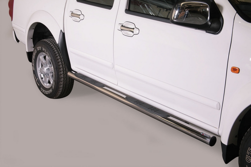 ESTRIBERAS GREAT WALL Wingle D.C. 11> Accesorios Misutonida realizados en acero inoxidable de la mas alta calidad. Fabricacion Italiana. Defensas delanteras, estriberas y defensas traseras de una calidad extraordinaria. Instalacion en los puntos de fijacion que dispone el vehiculo. Instrucciones de montaje paso a paso con ilustraciones para que la instalacion sea sencilla.