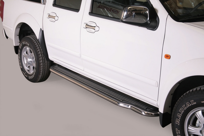 ESTRIBERAS GREAT WALL Wingle D.C. 11> Accesorios Misutonida realizados en acero inoxidable de la mas alta calidad. Fabricacion Italiana. Defensas delanteras, estriberas y defensas traseras de una calidad extraordinaria. Instalacion en los puntos de fijacion que dispone el vehiculo. Instrucciones de montaje paso a paso con ilustraciones para que la instalacion sea sencilla.