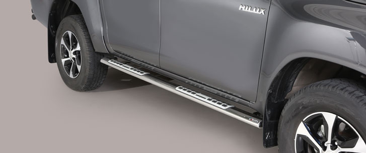 Estriberas laterales ovaladas acero inox TOYOTA Hi Lux double cab 16> MISUTONIDA ITALIA El tiempo de entrega del material puede ser de 7-9 dias Accesorios Misutonida realizados en acero inoxidable de la mas alta calidad. Fabricacion Italiana. Defensas delanteras, estriberas y defensas traseras de una calidad extraordinaria. Instalacion en los puntos de fijacion que dispone el vehiculo. Instrucciones de montaje paso a paso con ilustraciones para que la instalacion sea sencilla.