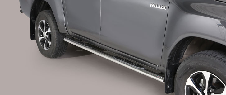 Estriberas laterales ovaladas acero inox TOYOTA Hi Lux double cab 16> MISUTONIDA ITALIA El tiempo de entrega del material puede ser de 7-9 dias Accesorios Misutonida realizados en acero inoxidable de la mas alta calidad. Fabricacion Italiana. Defensas delanteras, estriberas y defensas traseras de una calidad extraordinaria. Instalacion en los puntos de fijacion que dispone el vehiculo. Instrucciones de montaje paso a paso con ilustraciones para que la instalacion sea sencilla.