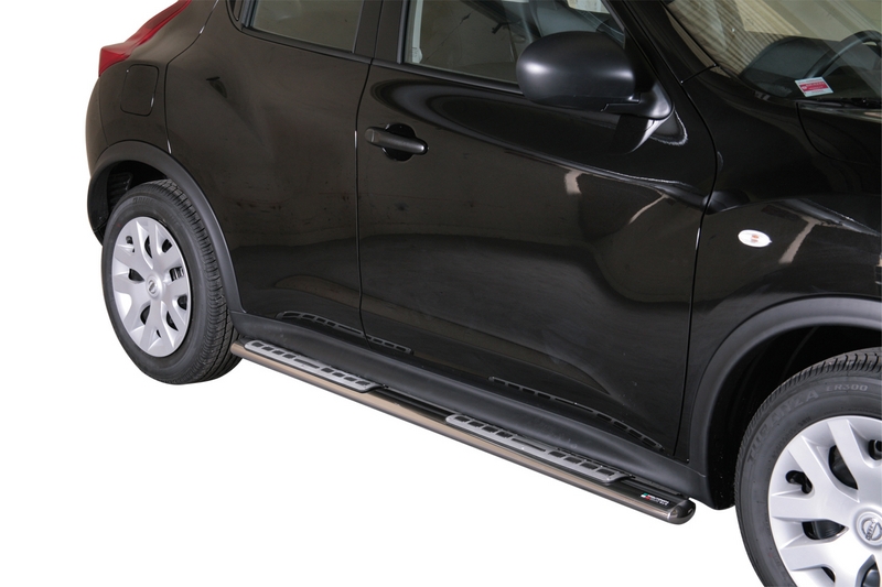ESTRIBERAS NISSAN Juke 10 > Accesorios Misutonida realizados en acero inoxidable de la mas alta calidad. Fabricacion Italiana. Defensas delanteras, estriberas y defensas traseras de una calidad extraordinaria. Instalacion en los puntos de fijacion que dispone el vehiculo. Instrucciones de montaje paso a paso con ilustraciones para que la instalacion sea sencilla.