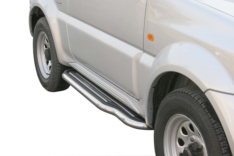 ESTRIBERAS SUZUKI Jimny 98> Accesorios Misutonida realizados en acero inoxidable de la mas alta calidad. Fabricacion Italiana. Defensas delanteras, estriberas y defensas traseras de una calidad extraordinaria. Instalacion en los puntos de fijacion que dispone el vehiculo. Instrucciones de montaje paso a paso con ilustraciones para que la instalacion sea sencilla.