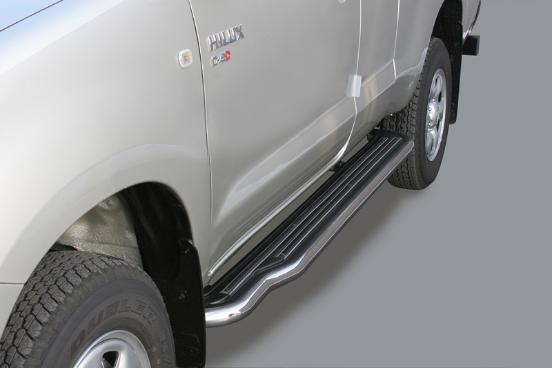 ESTRIBERAS TOYOTA Hi Lux extra cab 06> Accesorios Misutonida realizados en acero inoxidable de la mas alta calidad. Fabricacion Italiana. Defensas delanteras, estriberas y defensas traseras de una calidad extraordinaria. Instalacion en los puntos de fijacion que dispone el vehiculo. Instrucciones de montaje paso a paso con ilustraciones para que la instalacion sea sencilla.