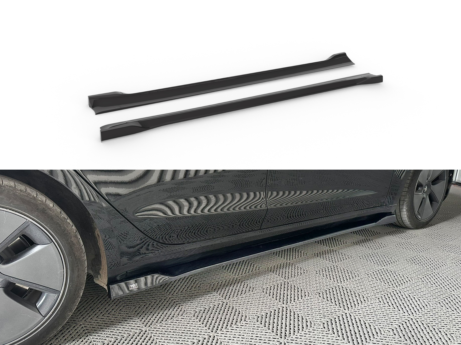 Extensiones de faldones laterales de Tesla Model 3 Mk1 / Mk1 Facelift fabricadas con material plástico ABS de alta calidad en una máquina de termoformado de última tecnología con un ajuste fácil y excelente. El material plástico ABS que utilizamos para la fabricación de nuestros productos viene en negro brillante con superficie antirayaduras y protección UV. El producto también tiene una lámina protectora que se recomienda despegar antes de colocarlo.